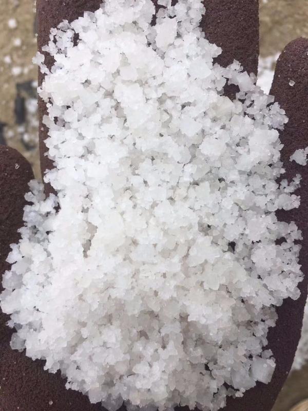 融雪鹽的表面通常被一層薄膜狀的飽和鹽溶液所包圍,當這層薄膜溶液的蒸氣壓低于空氣中水蒸氣分壓時,融雪鹽就吸附空氣中的水分而潮解;反之,當高于空氣中水蒸氣分壓時則呈現干燥狀態.當然,這只是在融雪鹽被暴露在空氣中才有的現象,密閉在包裝袋中與周圍空氣隔絕的融雪鹽是不會潮解的;